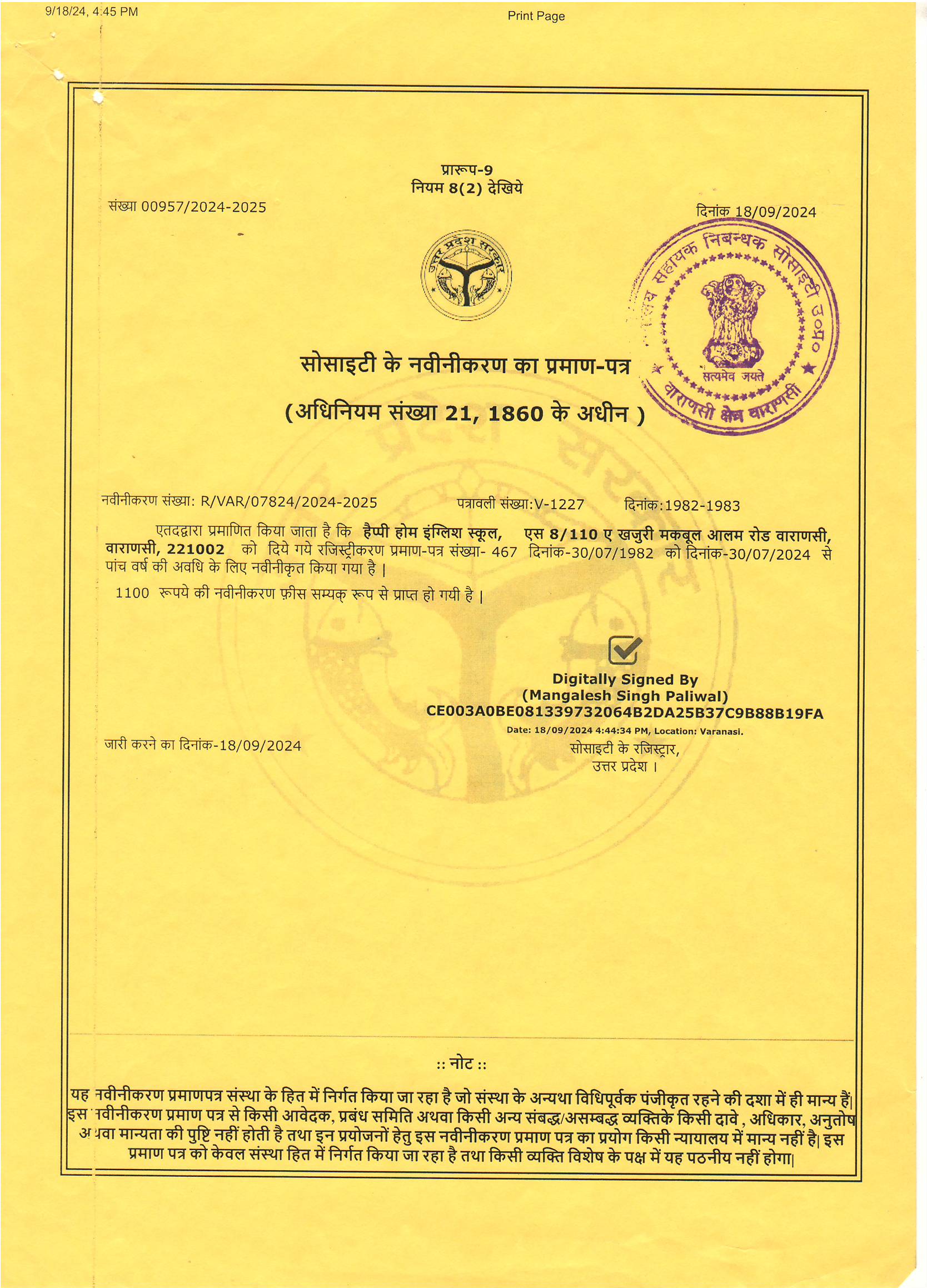 | COPIES OF RECOGNITION CERTIFICATE UNDER RTE ACT, 2009, AND IT’S RENEWAL IF APPLICABLE | ||